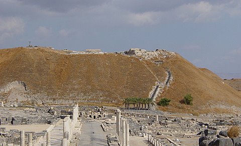 A view of the ancient tel (city) of Bet Shean. The bodies of Saul and