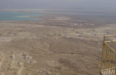 The fortress of Masada looking down on the Dead Sea. This was Israel’s last stand against the Romans. One of the rectangular Roman camps can still be seen in the right foreground.