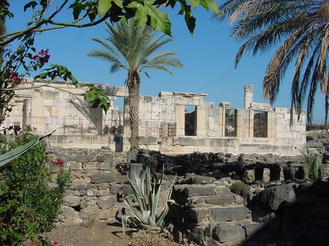 The synagogue at Capernaum where Jesus did much teaching
